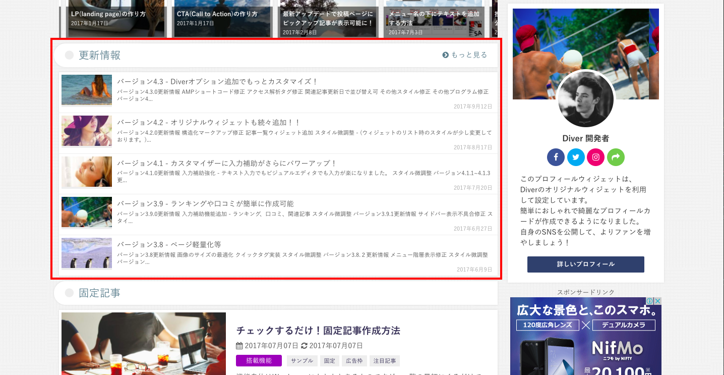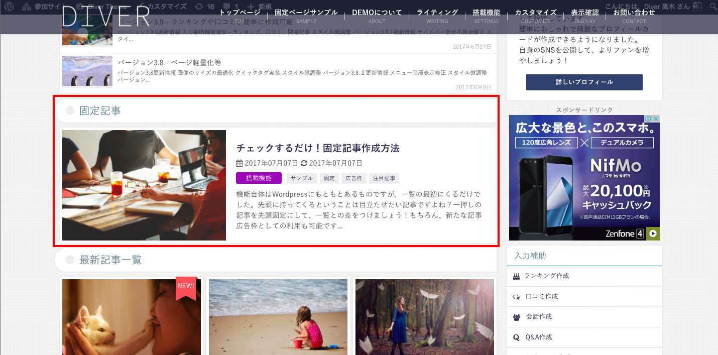 固定記事は、記事の更新日に関わらずにトップページに固定して表示される記事のことです。