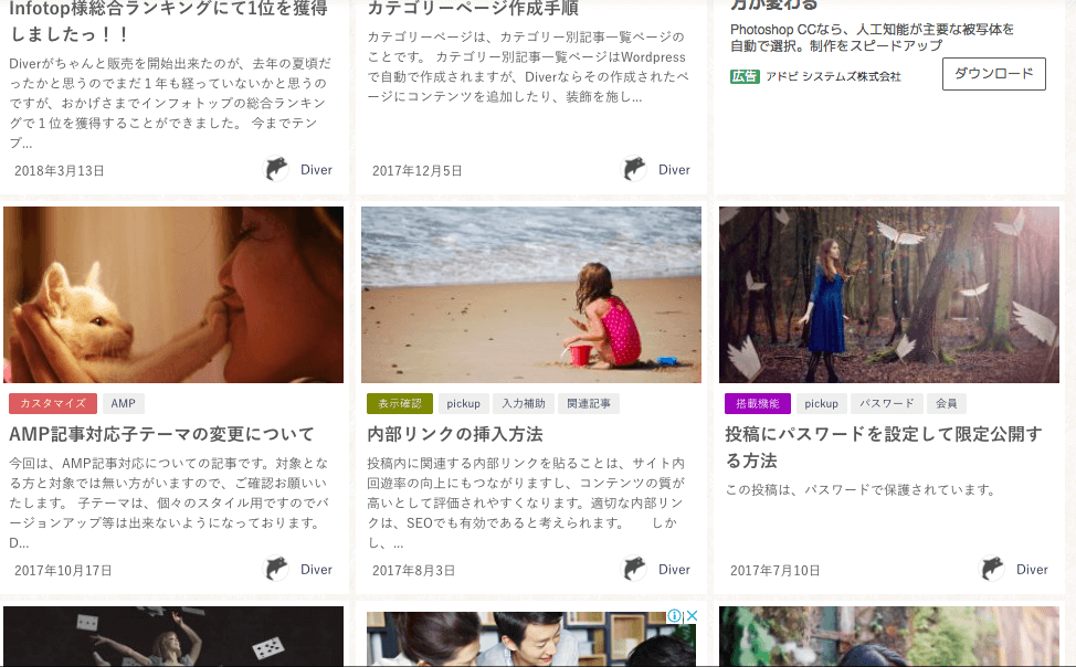 Diverでは、基本的には画像の素材等を用意していただかなくても、投稿さえあれば綺麗なサイトが作成できるようになっております。