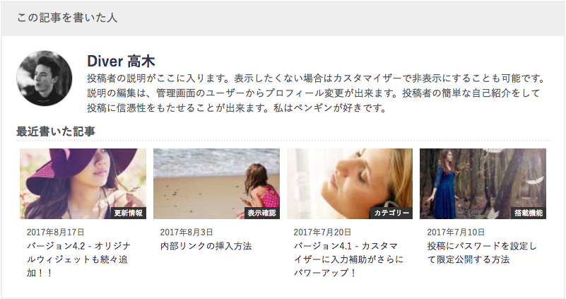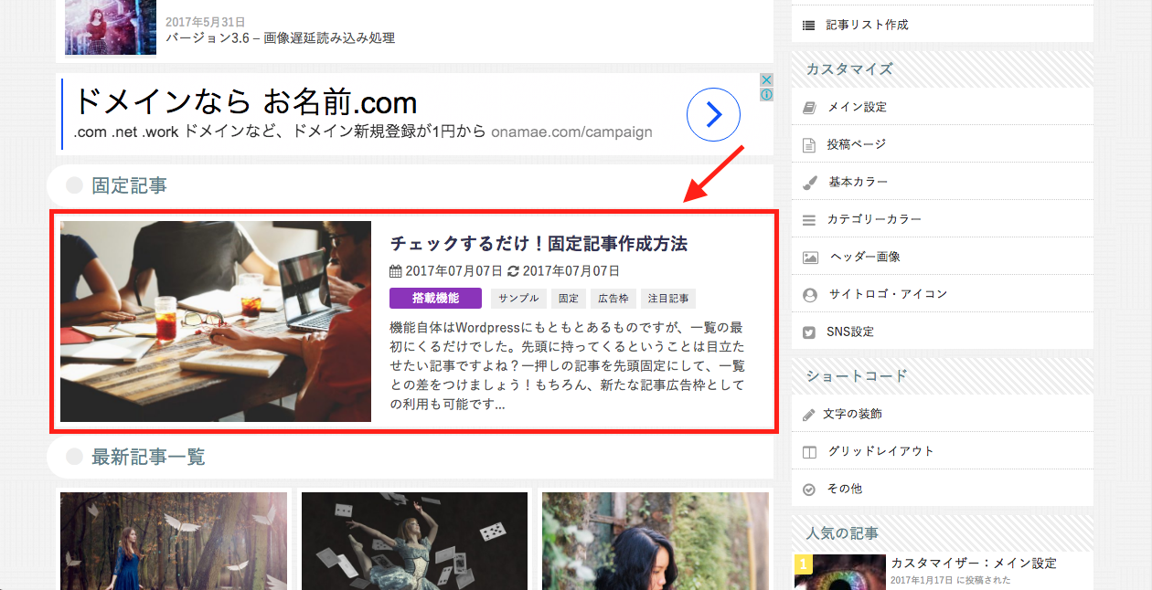 投稿ごとにトップページに固定出来ます。目的がはっきりしているサイトにはもってこいです。ジャンルに特化したアフィリエイトサイトでも使い道は無限に想定出来ます。