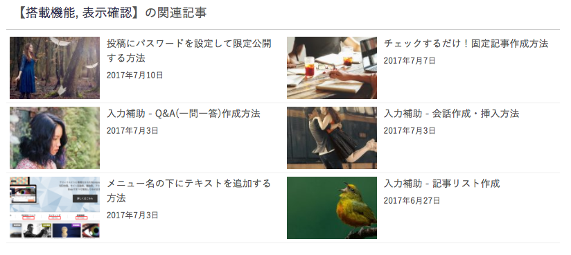 今度は、カテゴリーでピックアップします。通常ですと、記事一覧がすぐ来てしまいますが、カテゴリーピックアップを利用すれば、そのカテゴリーの一覧を表示してから、下に全ての記事一覧が表示されるようになります。
